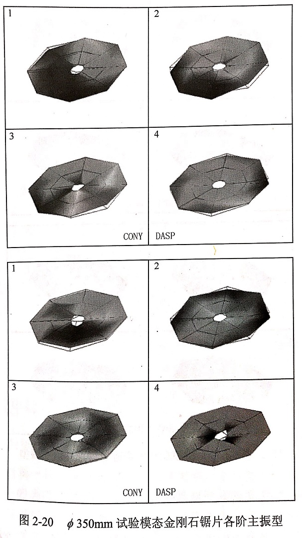 本試驗(yàn)采用每組六個(gè)金剛石鋸片,對(duì)三組直徑為三百五/四百/五百齒數(shù)分別為24/26的金剛石鋸片進(jìn)行模態(tài)試驗(yàn)。